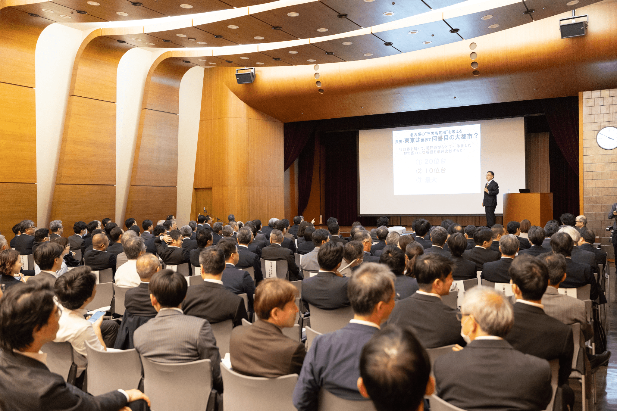 基調講演には、株式会社日本総合研究所 主席研究員 藻谷浩介 氏が登壇。最新データや都市比較の視点を交えながら、名古屋都心が持つ潜在力と、これから向き合うべき課題を多面的に分析されて、今後の議論の基盤となる示唆に富んだ講演となりました。